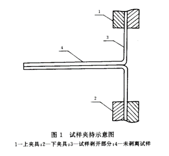 (2) 在試樣的一端,沿試樣長(zhǎng)度方向?qū)?fù)合層與基材預(yù)先剝開(kāi)50mm(被剝開(kāi)的部分不得有明顯損傷)。