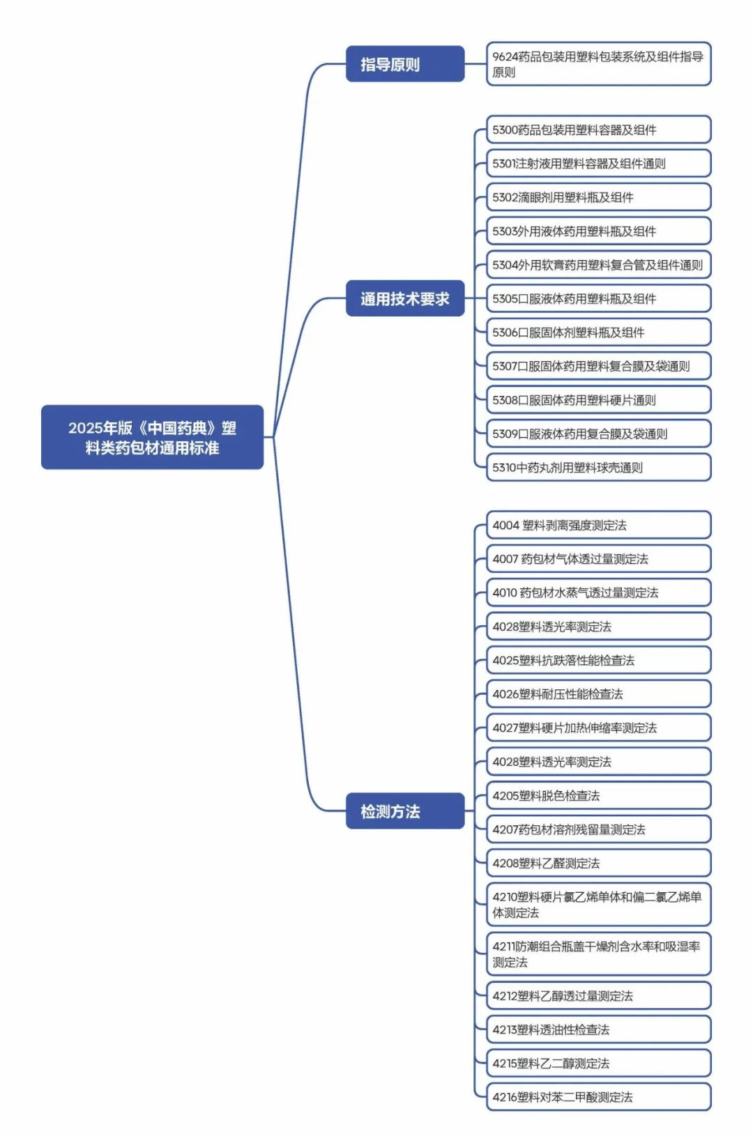 《中國藥典》2025年版在藥包材標準體系的構建上將進行重要創新。與以往“一品一標準”的模式不同,2025年版將主要采取通用技術要求的形式,構建以大通則、中通則、小通則為主體框架的標準體系。這一框架將涵蓋藥包材通則、材質通則、包裝系統通則以及品類通則,以實現上下通達、左右兼顧、銜接前后、博采內外的目標。預計會逐步收載成熟的通用技術要求和通用檢測方法,如藥用塑料材料和容器指導原則、藥用橡膠密封件指導原則等。