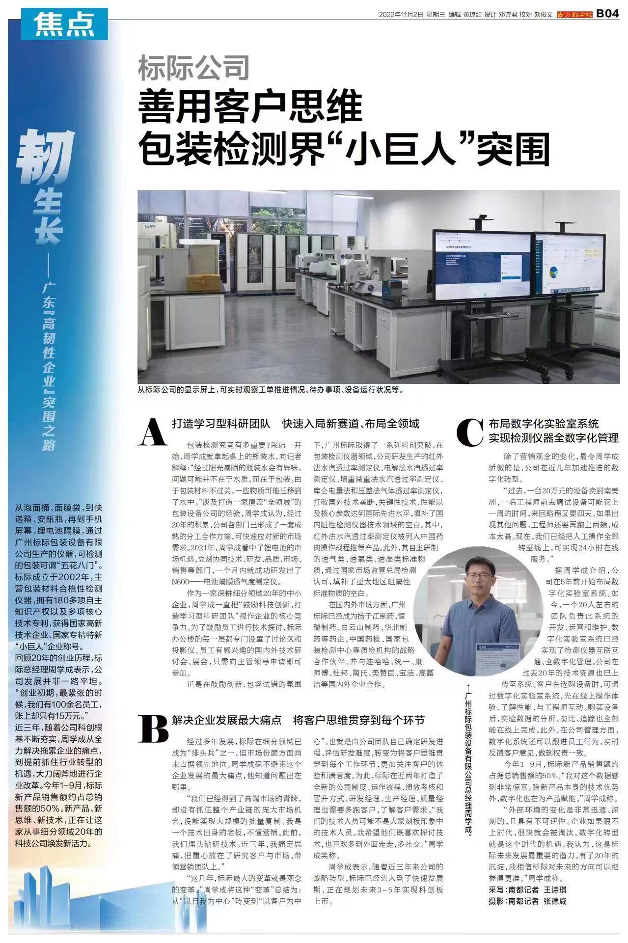 南方都市報(bào)采訪廣州標(biāo)際——包裝檢測(cè)界“小巨人”