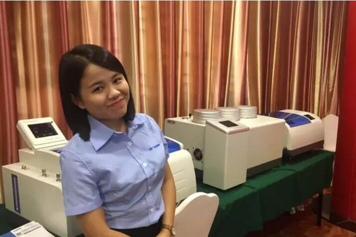 我司服務小天使——陳楚瑩,為現場參會人員解答藥包材檢測解決方案。