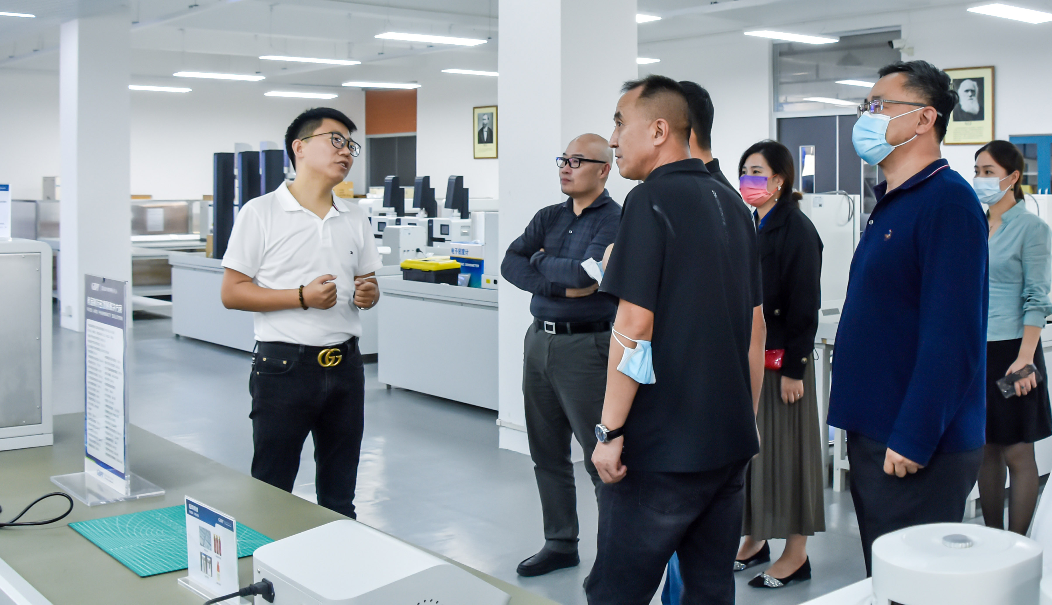 在參觀過程中,周總監(jiān)給領(lǐng)導(dǎo)們講解了20年來標(biāo)際取得的成就,其中有:專精特新小巨人企業(yè)、廣州市民營領(lǐng)軍企業(yè)、高新技術(shù)企業(yè);并擁有CNAS,CMA認(rèn)證的具備第三方檢測資質(zhì)的公司。