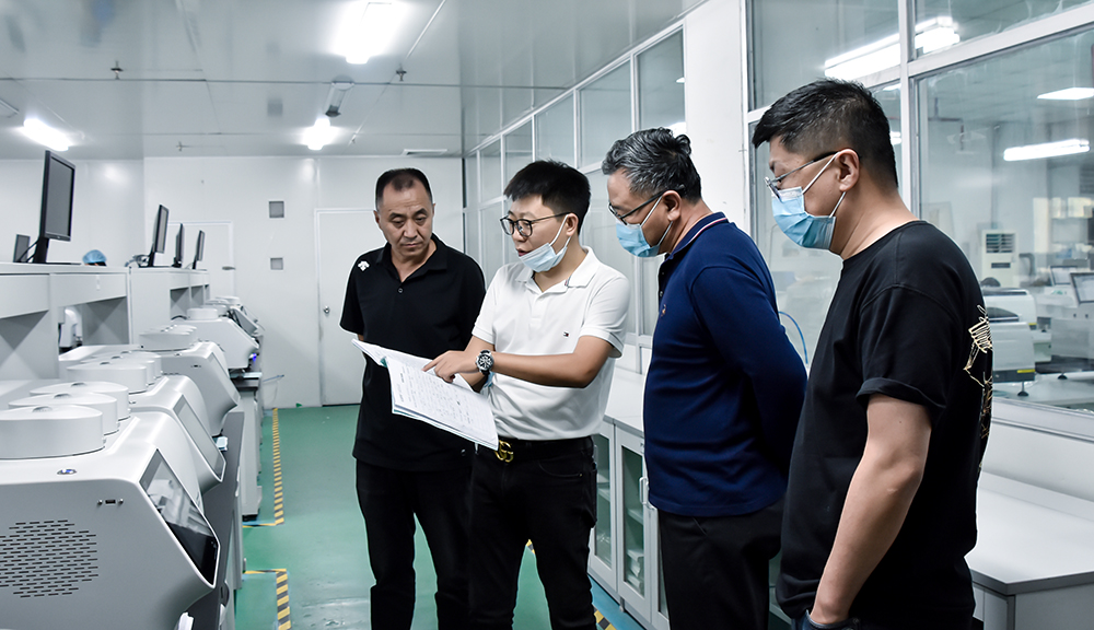 隨后,葵花藥業(yè)集團領(lǐng)導(dǎo)一行參觀了儀器車間、數(shù)字實驗室、產(chǎn)品中心等場所,周總監(jiān)介紹了標(biāo)際目前的各系列核心產(chǎn)品,其中的總遷移量及不揮發(fā)物檢測儀實現(xiàn)36腔自動加料、自動稱量、溶劑回收、無人值守與遠(yuǎn)程運維,為制藥行業(yè)不揮發(fā)物量的測試項目實現(xiàn)了集成化、無害化、自動化和精確化,有效提高蒸發(fā)效率,縮短檢驗時間。