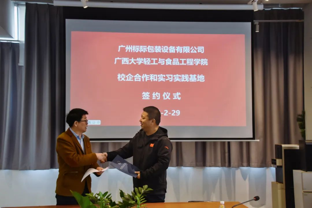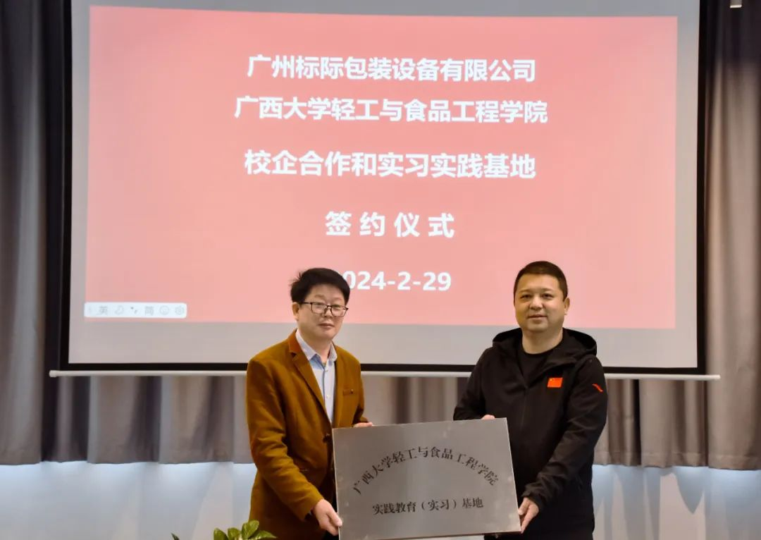 2024年2月29日,廣西大學輕工與食品工程學院與GBPI 標際在廣州標際總部舉行了校企合作和實習實踐基地簽約儀式。廣西大學輕工與食品工程學院書記姜瑋、包裝工程專業負責人黃崇杏、系副主任段青山、副教授梁東武,GBPI標際總經理周學惠、顧問向紅教授、大客戶銷售總監方國初等出席簽約儀式。