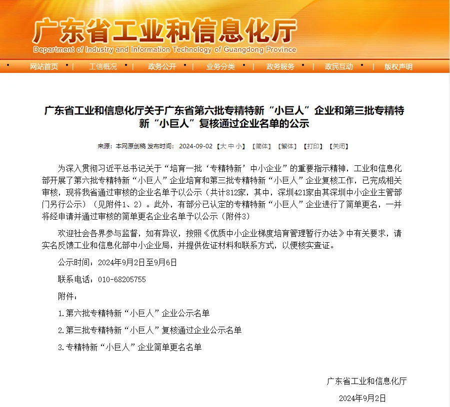 近日,根據(jù)廣東省工業(yè)和信息化廳發(fā)布的第三批專精特新“小巨人”復(fù)核通過企業(yè)名單,經(jīng)過嚴(yán)格評審和復(fù)核程序,GBPI廣州標(biāo)際順利通過第三批專精特新“小巨人”企業(yè)復(fù)核,進(jìn)一步證明了廣州標(biāo)際在行業(yè)內(nèi)的領(lǐng)先地位和卓越實力!
