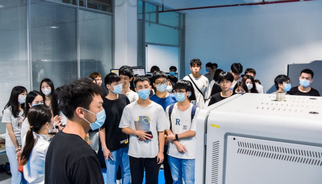 在黃經理的陪同下,毛老師一行先后參觀了參觀了標際CNAS實驗室、阻隔性能檢測儀器實驗室、基礎儀器生產車間、數字化實驗室、應用場景綜合展廳等場地。在應用場景綜合展廳中,GBPI標際儀器設備品類齊全、科技感十足令同學們贊嘆不已,引發了同學們極大興趣。在黃經理的詳細介紹和指引下,同學們對展廳儀器設備進行了認真觀摩和仔細了解,并興致勃勃的展開交流探討,氣氛融洽熱烈。