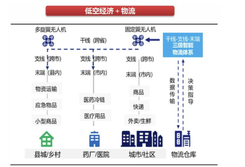 發布時間:2024-12-30一、低空經濟介紹 低空經濟(Low Air Economy)是指利用機器人技術、新能源驅動技術、飛行器技術以及機器視覺技術等多種新技術,在航空、航空傳輸、航空技術應用、航空創業等領域開發新服務和商業模式,結合數字技術實現數字化、智能化、無人化等服務體驗,創造新的航空經濟價值。 不同于航空運輸以及鐵路、公路、水運等交通運輸經濟,低空經濟主打在空中的行業服務,區域和規模相對較小,但是能更好的符合小區域內人們的生活習性。 將航空與行業相結合不僅可以為該行業提供空中解決途徑或輔助手段,以提升工作效率,還能降低成本、增強獲得感等。例如“農林+航空”、“電力+航空”、“公安+航空”、“救護+航空”、“旅游+航空”、“體育+航空”等。此外,空域使用需要軍民融合、飛行保障需要空地融合、有人機無人機需要融合運行等,也從不同側面反映出低空經濟的融合性特征。 2021年2月,中共中央、國務院印發《國家綜合立體交通網規劃綱要》,提出“發展交通運輸平臺經濟、樞紐經濟、通道經濟、低空經濟”。這是“低空經濟”概念首次寫入國家規劃,標志著低空經濟成為“十四五”時期需要認真謀劃的新興經濟形態。2023年5月31日,國務院、中央軍委公布的《無人駕駛航空器飛行管理暫行條例》(自2024年1月1日起施行)更是推動低空經濟進一步發展。2024 年 3 月,《通用航空裝備創新應用實施方案》中指明低空經濟發展目標,即“2027 年基本完善,2030年全面融入”。地方政府緊跟指引,多個省市提出發展目標,部分地區率先開展補貼政策,補貼方向為起降點設施建設、航線開設、適航取證。 低空經濟作為一個全新的經濟體系,將機器人技術、新能源驅動技術、飛行器技術等多種前沿技術與數字化、智能化相結合,為航空領域帶來了巨大的商機。隨著技術的不斷創新和政策的積極支持,低空經濟有望進一步壯大,為中國經濟帶來新的增長點,同時也將為社會提供更多的便利和服務,推動中國成為低空經濟領域的全球領導者。 二、產品介紹 ?低空經濟的主要產品包括eVTOL(電動垂直起降飛行器)、無人機和直升機。 無人機和 eVTOL 的核心區別在于 eVTOL 用于載人,無人機用于載物。 三、低空經濟市場現狀 1.市場規模 2023 年,中國無人機產業規模約達到 1264.3 億元,從地區規模分布來看,主要集中在中南地區,占總體比重達到 75.4%。2019-2023 年中國民用無人機注冊數量逐步提升,2023 年達 127 萬架,同比+32%,民用無人機企業注冊數量達 1.9 萬家,同比+26%,2023 年中國民用無人機市場規模為 1174.3 億元。根據預測,2030 年中國的 eVTOL市場規模有望達 1427 億元,根據民用航空局發布數據,預計以 eVTOL 為核心的低空經濟市場規模有望達 2 萬億元。 預計到2025 年,低空經濟對中國國民經濟的綜合貢獻值將達 3 萬億至5萬億元。 2. 行業現狀 (1)eVTOL 是低空經濟中從 0到 1 的存在,驅動產業鏈騰飛。在現階段還是以有人駕駛航空器為主,但也有載物的 eVTOL,如峰飛載物的 eVTOL 凱瑞歐。 (2)各國近期推出的 eVTOL 項目傾轉構型機型最多,多旋翼構型最少,復合翼成為大部分行業龍頭公司的研發選擇。未來傾轉構型和復合翼構型這兩種機型增長潛力最大。 (3)目前低空經濟補貼主要是廣州、深圳、武漢、四川北川、蘇州提出,主要補貼方向是起降點設施建設、航線開設、適航取證等。目前進度來看,廣州市、深圳市領先。 (4)截至 2023 年底,美團無人機配送服務累計完成用戶訂單超 22 萬單,2024 年中通與峰飛航空簽訂了 eVTOL 購機協議,訂單量達 30 架。 (5)截至 2024 年 2 月,中國低空經濟領域共有企業超 5.7 萬家,從成立時間看,近五年新成立的企業數達到 2.1 萬家,近十年成立的企業數占比接近 80%。 3.市場需求 (1)2022 年中國民用無人機行業需求主要系測繪與地理信息/農林植保/安 防監控/巡檢/快遞物流/應急,分別占比 30%/26%/12%/11%/8%/5%,行業運用領域需求巨大 (2)eVTOL 成本低,降本空間廣闊,在實際應用中時間效率更高,降本空間高達 67%,具備經濟可行性。 (3)隨著物流業務快速發展,2022年快遞業務已達 1105 億件數,物流無人機僅 2.6 萬架,仍具備很大發展空間。 (4)eVTOL 單機電機量大幅增加,性能要求更高,對于高低溫、濕熱、低溫低氣壓、鹽霧、臭氧、電磁兼容、振動等方面的要求較高,需要適應各類極端環境,相關行業檢測需求量巨大。 4.競爭狀況: 目前,國內寧德時代、孚能科技、正力新能、國軒高科、中創新航、力神等鋰電池企業已經開展了航空級電池的技術攻關,且部分企業已經推出了航空級電池產品,其中寧德時代凝聚態電池能量密度突破 500Wh/kg。 四、低空經濟與包裝行業的關系 低空經濟與包裝行業之間存在著多方面的關系,主要體現在以下幾個方面: 1. 物流與配送 “低空經濟+物流”是低空經濟的主要應用場景之一,市場空間廣闊。早在10多年前,中國物流行業的領軍企業便前瞻性地對低空物流領域進行了戰略布局,紛紛組建起專業的無人機研發團隊,積極投入無人機技術的研發與測試。相比傳統物流配送方式,無人機在短途運輸、跨境飛行、城市配送等場景有明顯優勢,比如能突破環境條件限制、有較高的配送效率、較低的人力成本和安全隱患等等。 尤其是當平面空間所承載的物流運輸方式無法滿足時,立體空間衍生而來的無人機飛行在城市物流應用場景中
